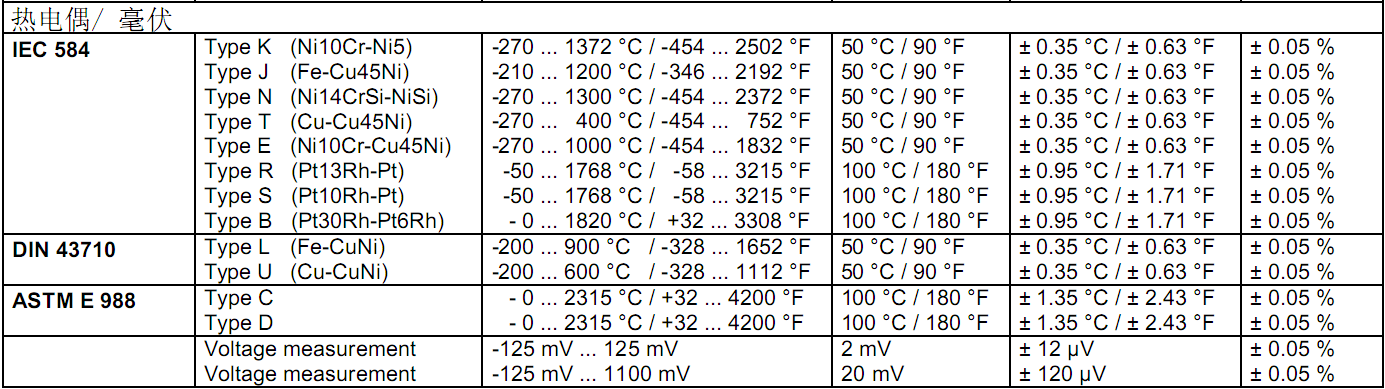 HART-644智能溫度變送器模塊專用于高性能HART協(xié)議溫度變送器,采用*********新的AD采集處理技術(shù),實現(xiàn)高精度和高穩(wěn)定性。全面支持4種熱電阻和8種熱電耦,3種電壓信號和3種電阻信號,真正wn****輸入。同時支持測量毫伏信號和電阻信號。隔離電壓DC1000V。HART-644擁有翠綠色背光的多功能全視角LCD顯示器,可以同時顯示多達4個變量, 并可以360度旋轉(zhuǎn) HART-644智能溫度變送器基本特點: ◆供電電壓:DC10V~32V; ◆輸出信號4-20mA疊加HART□協(xié)議數(shù)字通信(兩線制),HART通信不影響4-20mA模擬輸出; ◆可通過手操器和PC機組態(tài)調(diào)試軟件遠程管理; ◆內(nèi)部采用Pt100測量環(huán)境溫度,以用于熱電偶冷端補償; ◆冷端補償精度:0.5℃; ◆阻尼:0~32秒可調(diào); ◆數(shù)據(jù)刷新率:4次/S; ◆穩(wěn)定性:±0.2%/年 ◆工作溫度環(huán)境:-40℃~+85℃(LCD工作溫度范圍:-20℃~+70℃); ◆外形尺寸: 60mm; ◆安裝孔間距:D= 33mm,使用M=4mm安裝螺釘; ◆抗機械振動:10~60HZ,0.21mm正弦波; ◆抗射頻干擾:IEC61000-4-3, 20V/M,80~1000MHZ HART-644智能溫度變送器性能和優(yōu)點: ◆輸入信號:熱電阻(Pt100,Pt10,Cu100,Cu50) ◆熱電偶(B,S,T,N,R,K,E,J型) ◆輸出信號:二線制技術(shù),4-20mA模擬量輸出 ◆電氣隔離 ◆傳感器損壞或短路故障信號可預(yù)設(shè) ◆用戶可自定義測量范圍 ◆精度等級:≤0.25% ◆供電電壓:12~45VDC ◆工作溫度:-40~85℃ ◆負載影響:≤±0.02%/100Ω ◆長期穩(wěn)定性:≤0.1K/Y 熱電阻測量精度查詢表: